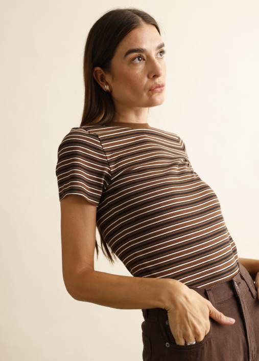 Camryn Boxy Tee Overlay - Tannin Ecru Stripe