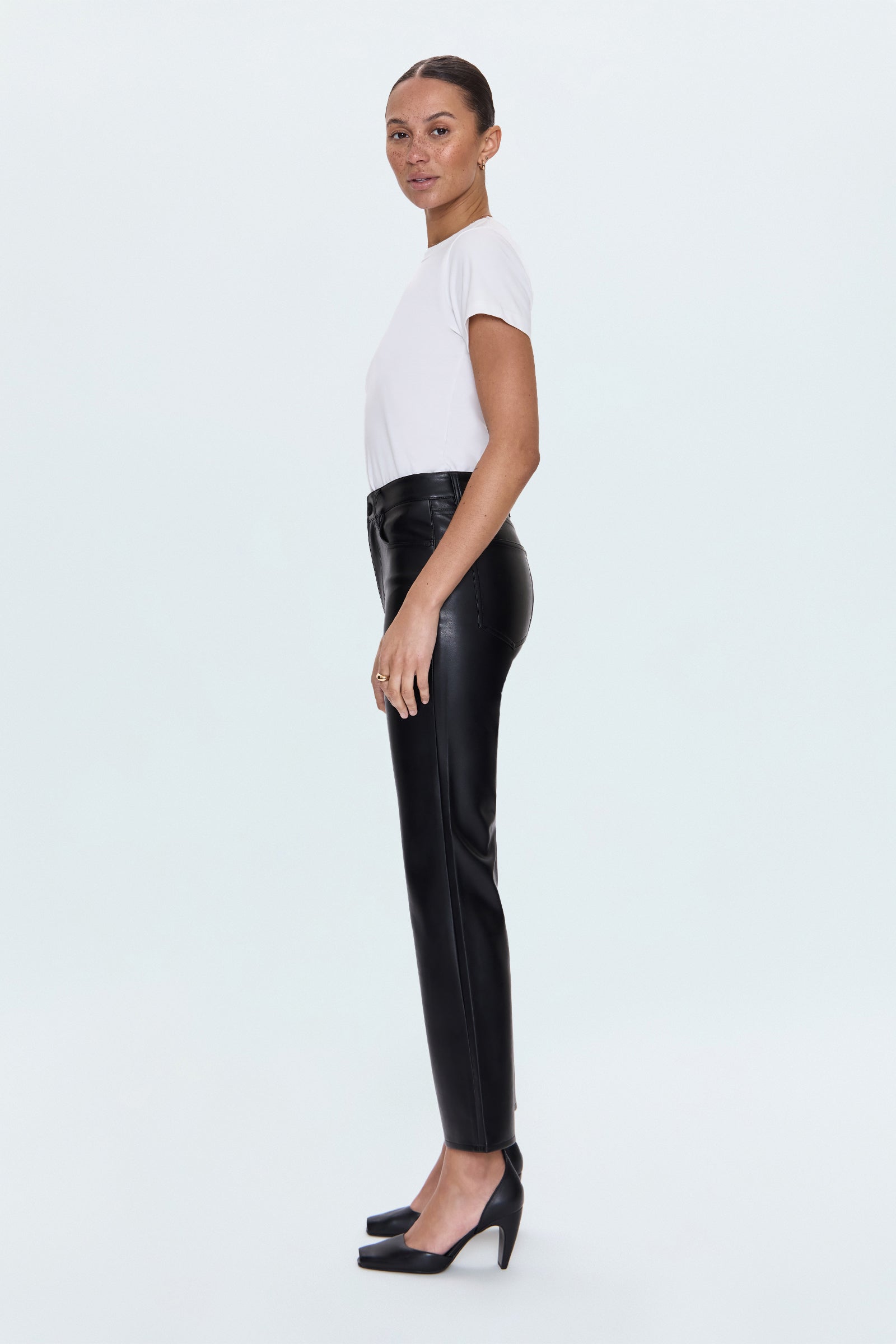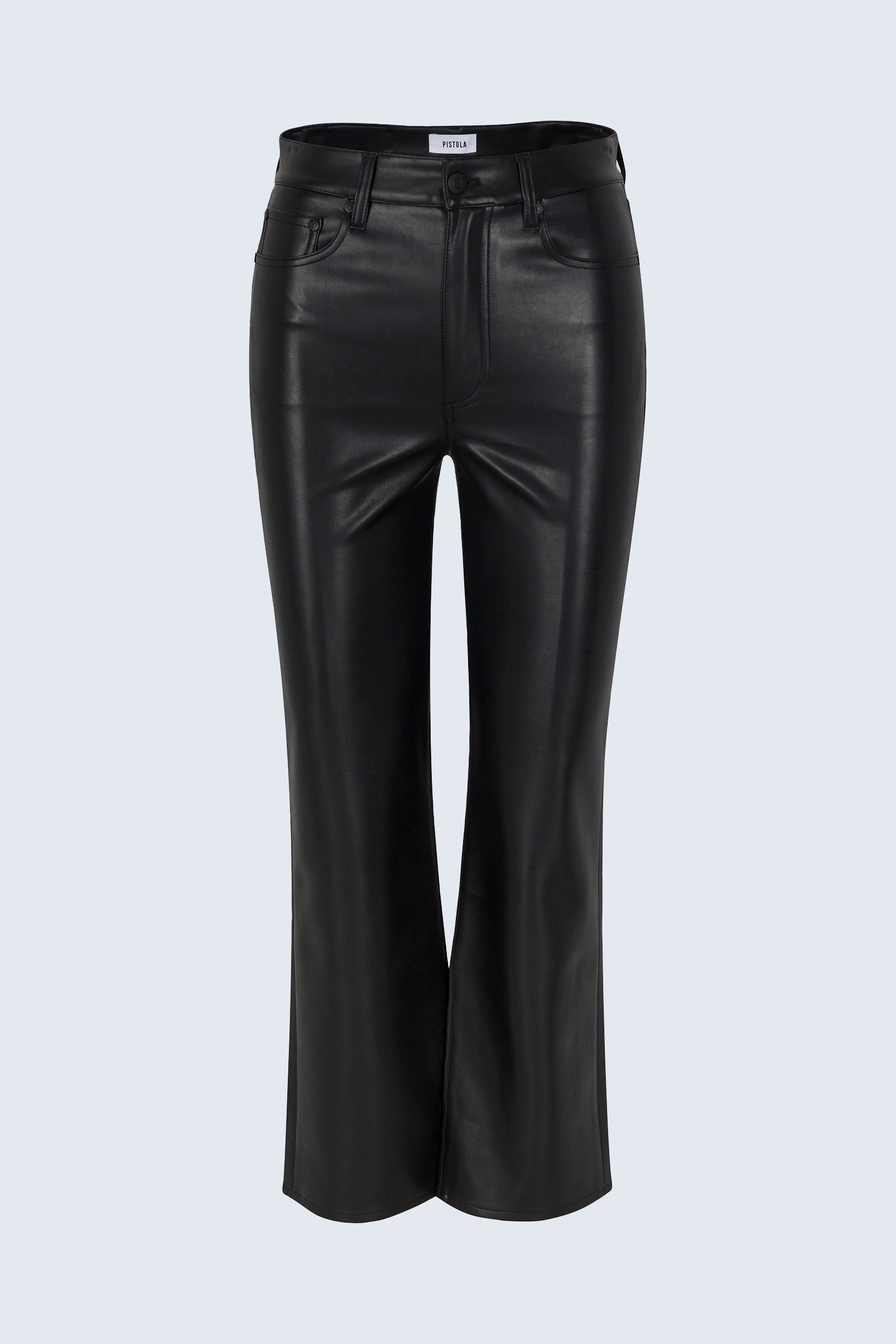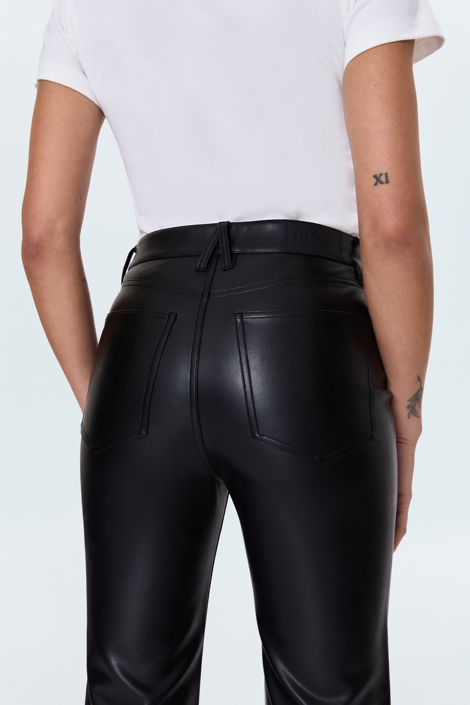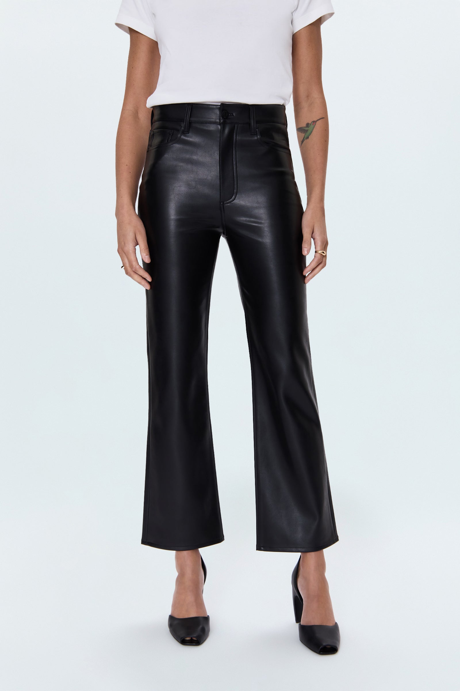 A modern bootcut with vintage inspiration, Ally offers a high rise, slightly wider leg, and cropped 28" inseam for a relaxed fit. Crafted from our signature alt leather in Onyx, a rich black coated finish that elevates the timeless silhouette with sleek sophistication.
