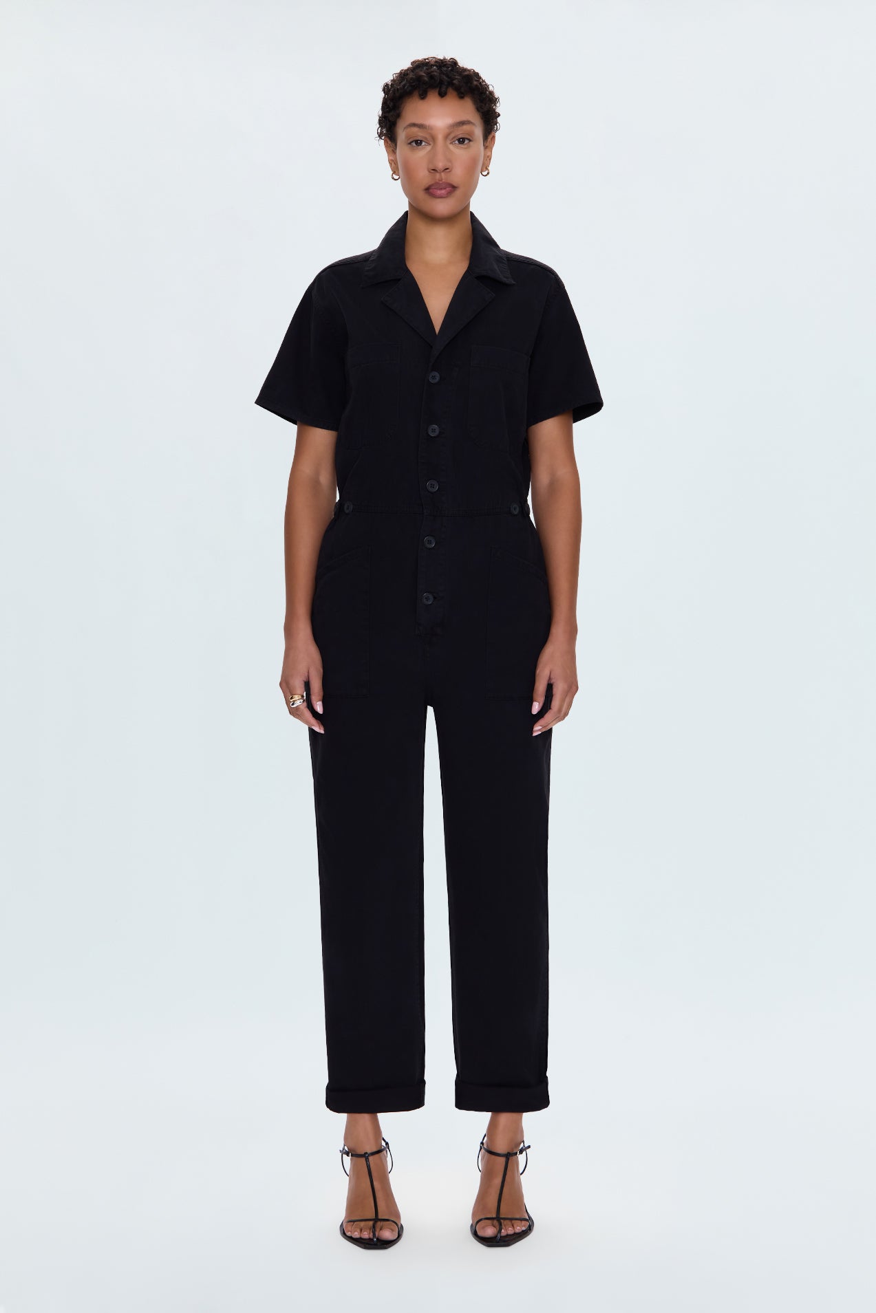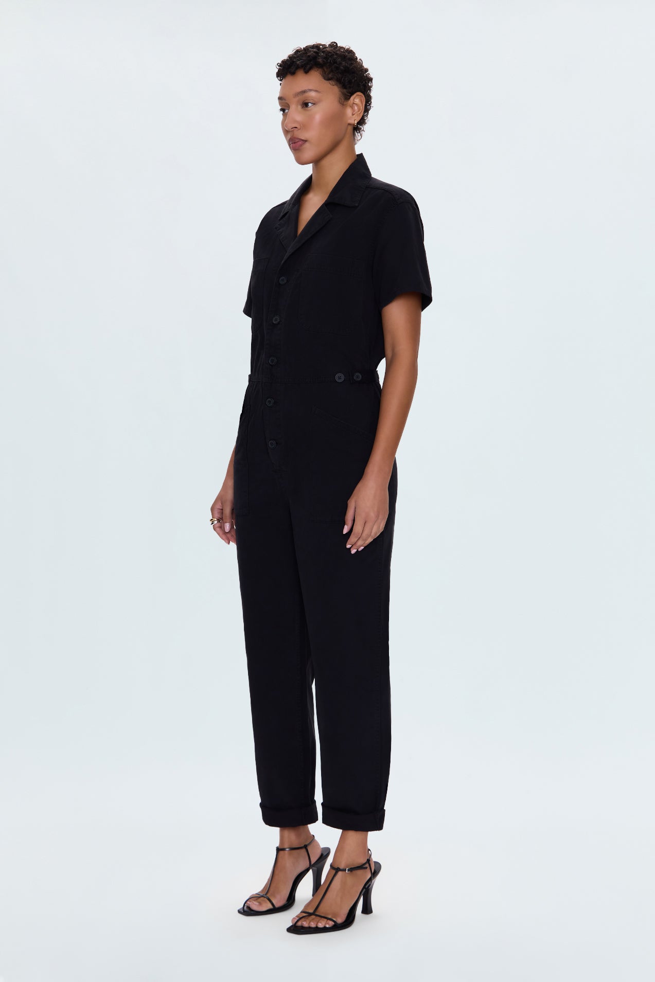 All-in-one outfitting, expertly realized in our best selling jumpsuit silhouette. Designed for a relaxed fit, with a button up bodice and waist for adjustable coverage and fit options.