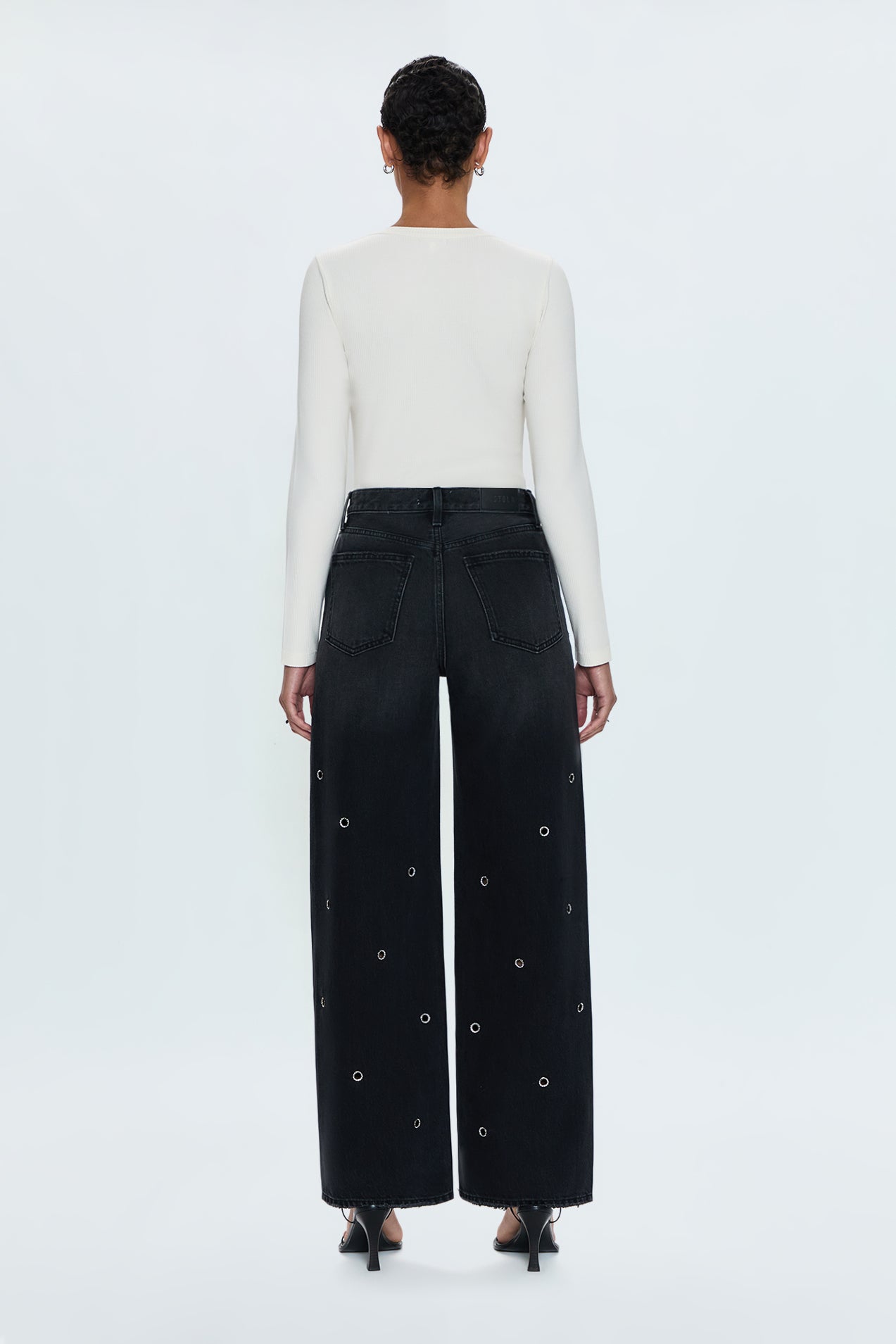 The baggy jean you've been waiting for—the jean that sold out in a week and became an instant influencer favorite. Hendrix delivers effortless cool with a high rise and relaxed baggy silhouette that captures the season's must-have look, finished with a full-length 31" inseam. Intentionally designed to be very baggy, the slouchy fit sits comfortably while the structured shape maintains purposeful proportions. Crafted from 100% cotton rigid non-stretch denim that provides authentic structure and develops character over time. Glamour brings elevated sophistication with its rich black wash and subtle metallic hardware details that add unexpected luxury to the relaxed silhouette. The perfect jean for transitioning from work to dinner—size down if you prefer a more fitted silhouette.