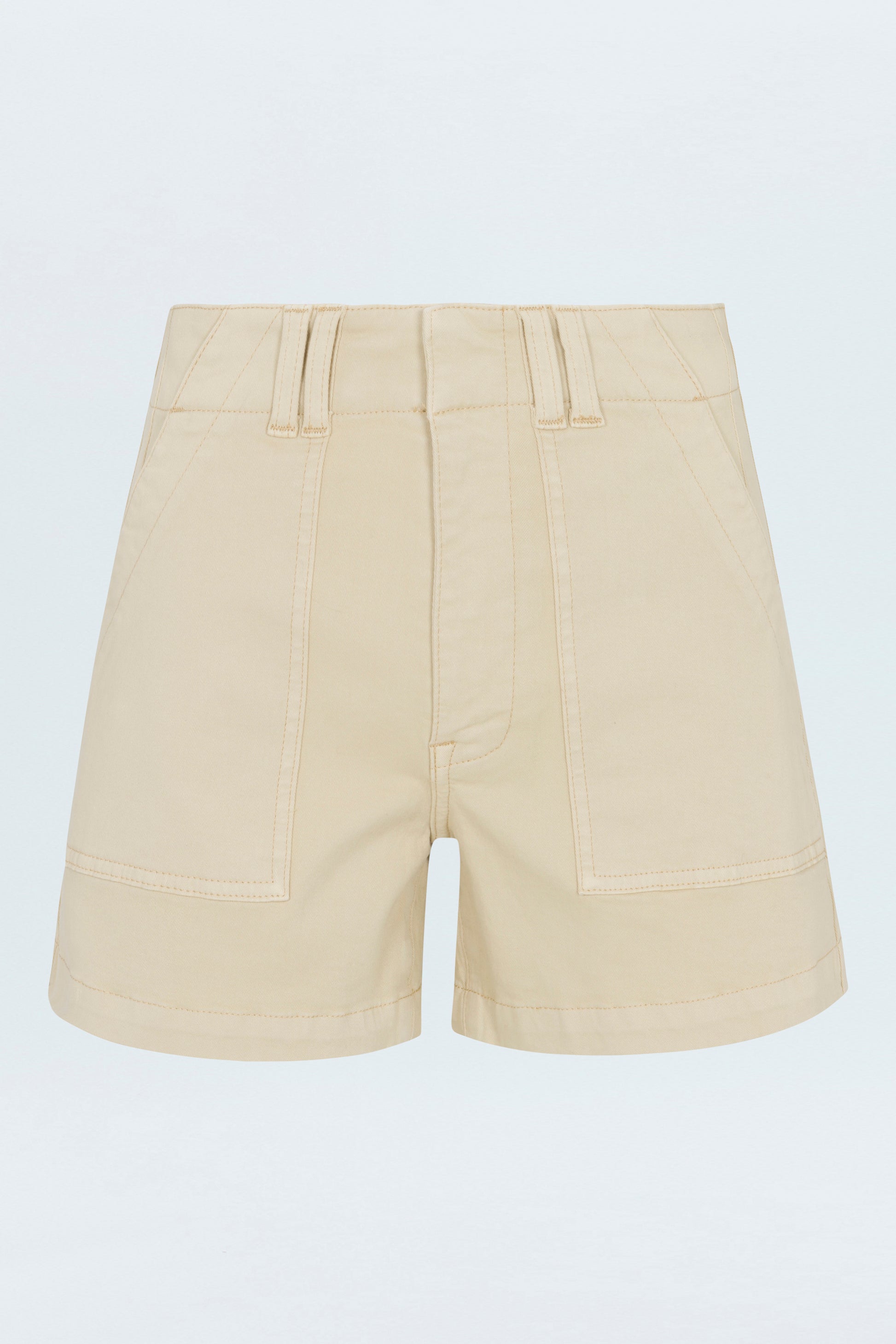 High-Rise Utility Shorts in Custard Yellow. Make a statement in these effortlessly chic shorts. Designed with a relaxed fit, medium length, and lightweight stretch fabric, they offer ultimate comfort with a modern edge. Utility-inspired details and a rich yellow hue elevate your warm-weather wardrobe. Monochromatic seaming and hidden hardware complete the sleek, minimalist look.
