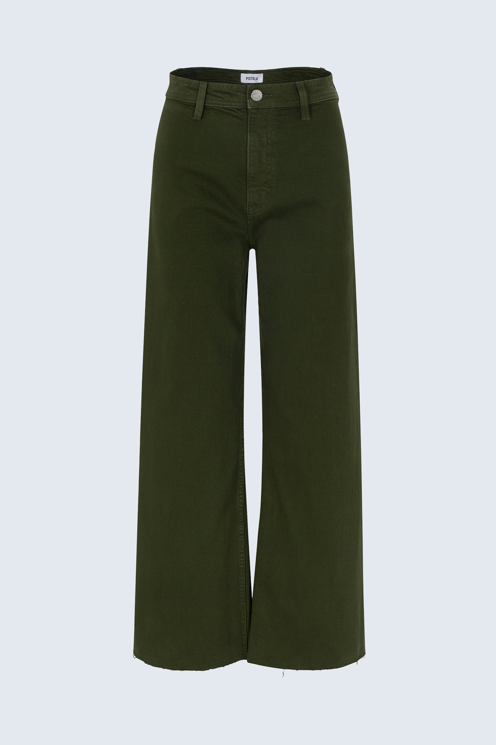 A signature silhouette, Penny features a high rise and ultra-wide leg with a full-length 28" inseam that creates clean, fluid movement. Designed without side seams for a smooth, uninterrupted line that elongates the frame. Crafted from comfort stretch denim that holds its structure while allowing ease of wear. Laurel, a deep green tone, grounds the look with understated sophistication.