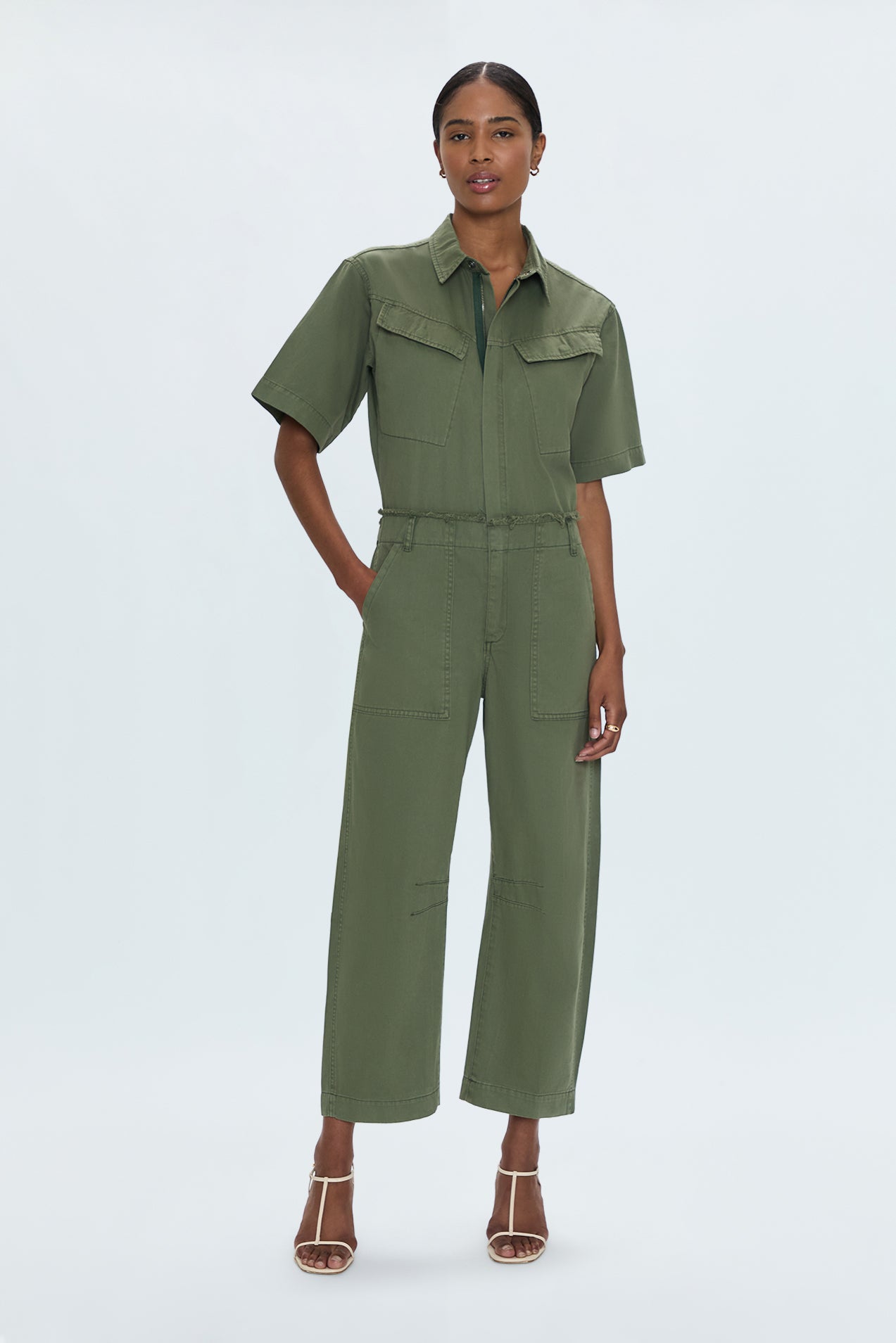 We know jumpsuits, and the Pippa is a testament to our expertise. Designed with our signature curved leg, this jumpsuit offers a flattering silhouette that's both modern and timeless. Subtle fraying at the hem adds a touch of effortless cool, while the easy zip closure ensures comfortable wear from day to night. Crafted from non-stretch twill, the Pippa features knee darts for added shape and a relaxed fit that's perfect for any occasion. Where utility meets chic, the Pippa Jumpsuit is the one-and-done outfit you'll reach for again and again.