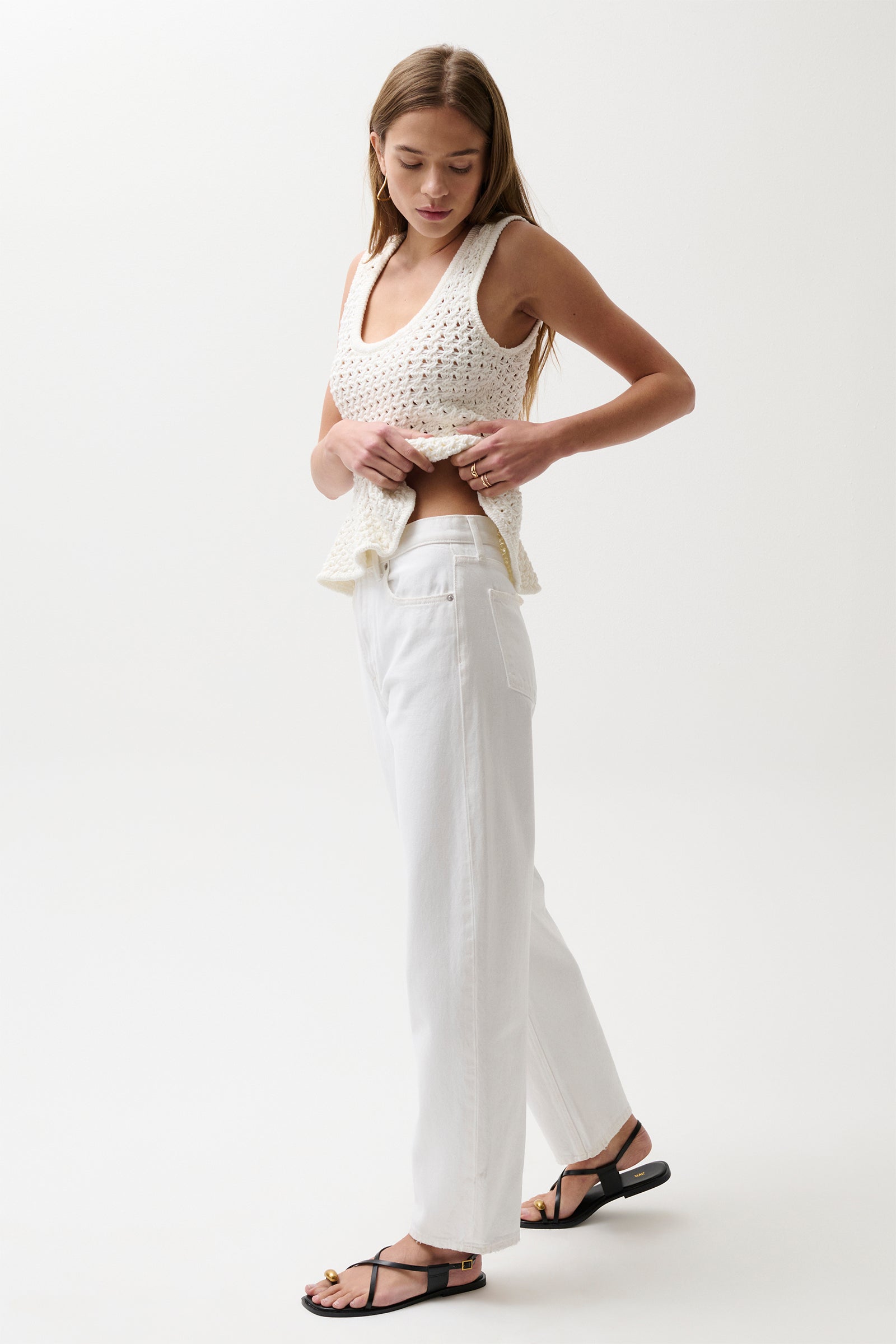 Classic style, modern fit. These high-rise, full-length jeans in a crisp white wash offer a timeless silhouette with a modern twist—designed to hold their shape and provide an expert fit. Crafted from rigid denim, this style will naturally soften and relax with wear.